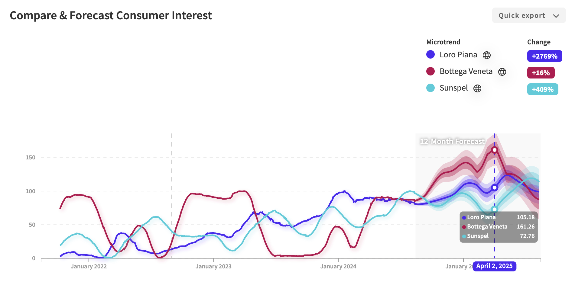 The brands leading the discreet chic trend and forecast to rise in consumer interest over the next year are: