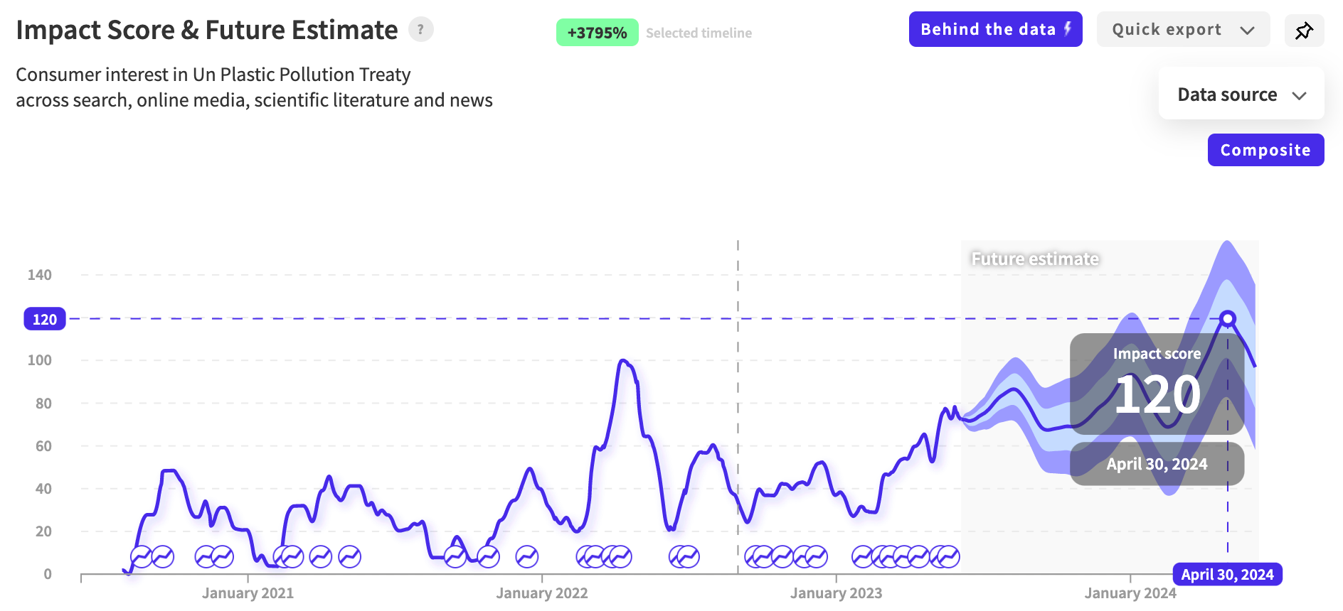 The below NWO.ai signal shows the growing consumer interest in the UN Plastic Pollution Treaty.