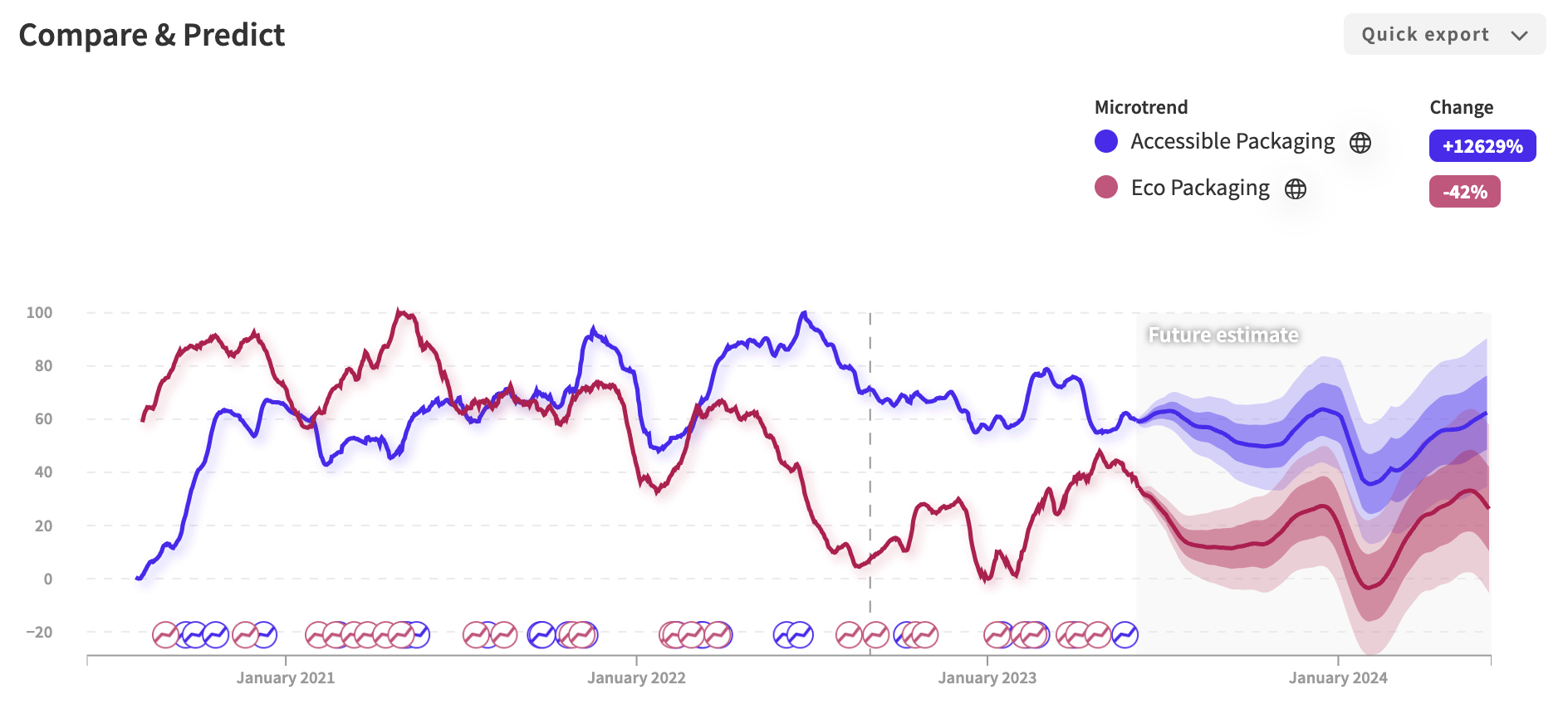 So while sustainable packaging IS a preference for consumers. Accessibility is far more important. Below is the comparison for the signals ‘accessible packaging’ and ‘eco-packaging.’