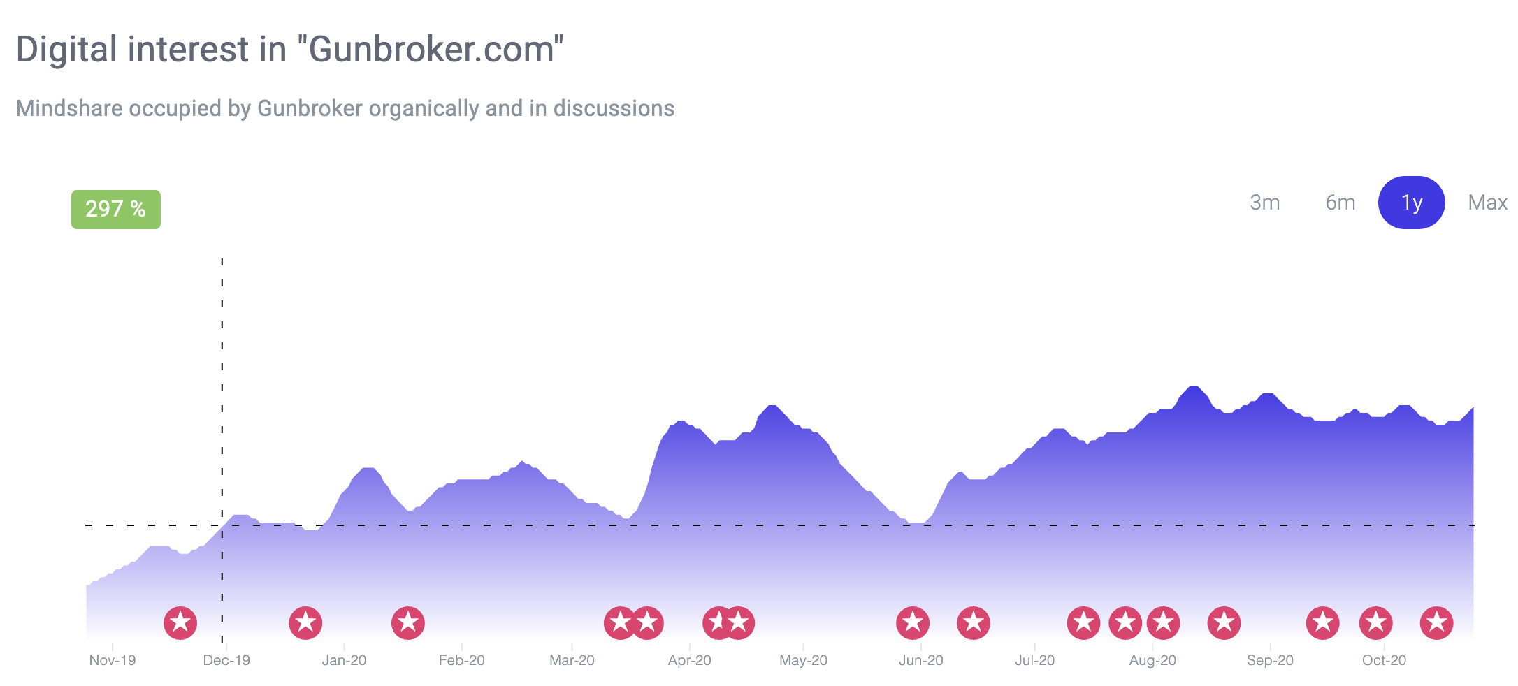 E-commerce sites such as Gunbroker.com have seen a steady buildup in their signals since the mass protests in June (currently the signal is at an all-time high).