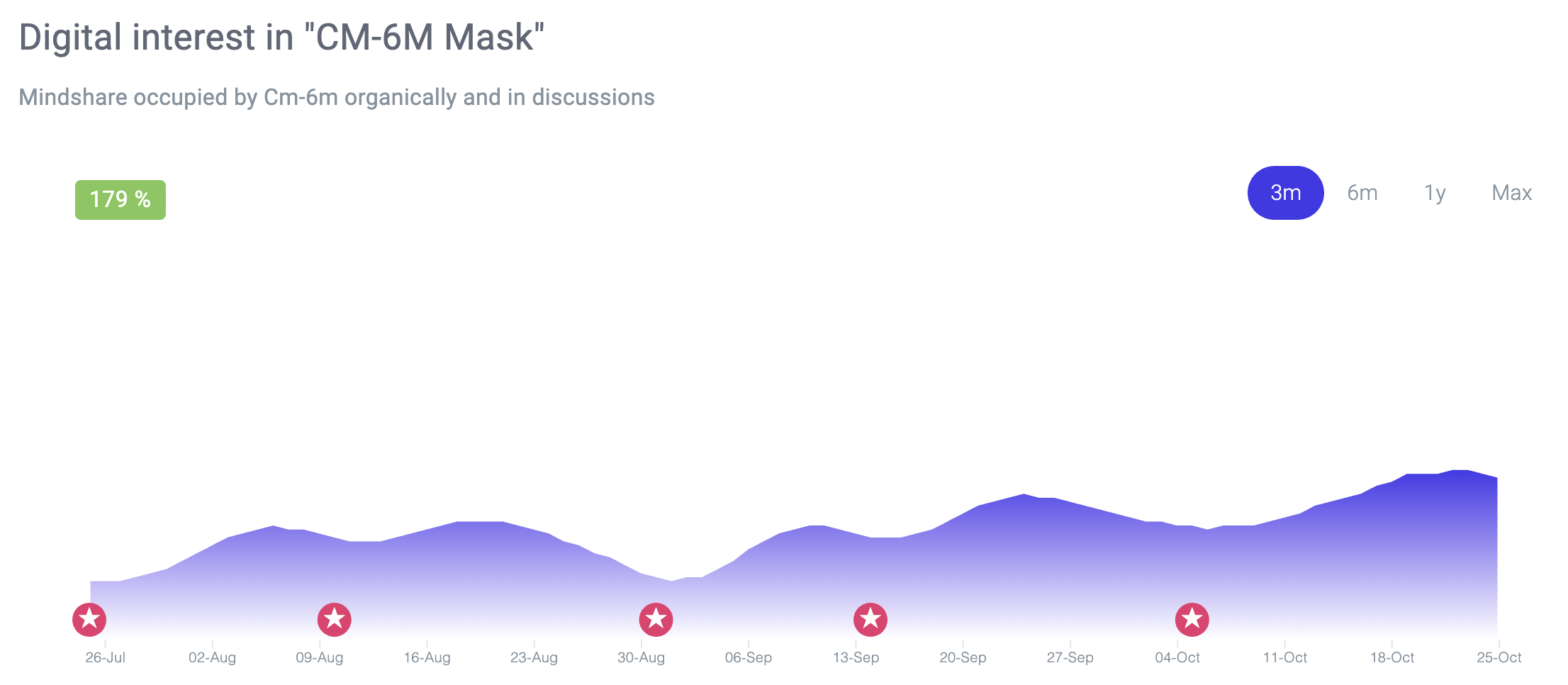 Interest in CM-6M, a tactical mask made for riot control situations, grew by 180% over 6 months.