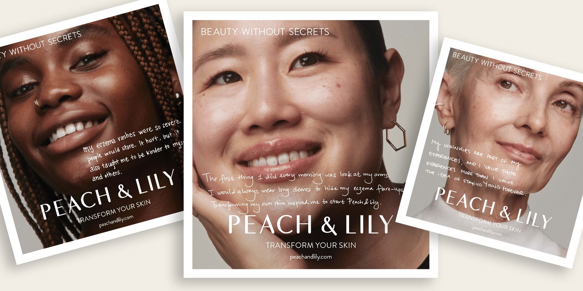 If you go on an NYC subway this month, you may see a new ad campaign from skincare brand Peach and Lily. A photo of a woman smiling reads,