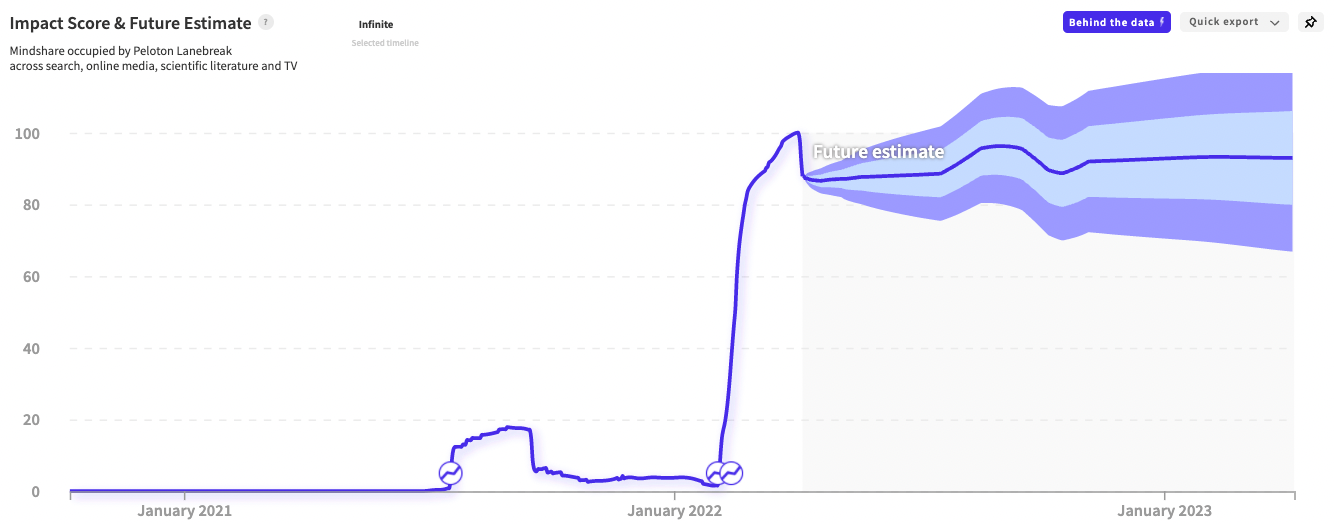 Peloton Lanebreak is Peloton's latest feature to catch onto the "gamified" fitness trend. Typically, Peloton riders do live or pre-recorded classes during their training session. Peloton Lanebreak moves away from the traditional class instructor model and provides riders with "a music & gaming-inspired fitness experience where riders have to match and sustain their resistance and cadence according to the cues on the touchscreen to get the highest score possible." The experience should make riders feel less like they are begrudgingly completing a workout and more like they are playing a video game. Peloton has been struggling, laying off 2,800 workers back in February, and has seen its stock plummet 72% in the past six months. Peloton hopes new features like Lanebreak will reengage users and attract new customers.