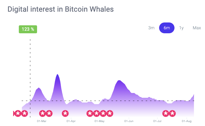 5. The arrival of BTC whales: Last month, NWO detected multiple inflection points in the “whale narrative.” BTC whales are investors or traders who own large amounts of cryptocurrency. As BTC whales accumulate BTCs, the circulating supply reduces, and this can weaken any bearish trend Bitcoin finds itself in. What this means in essence is that over time, as BTC approaches its fixed supply of 21 million, the price of BTC may go up, with BTC’s present demand factored in.