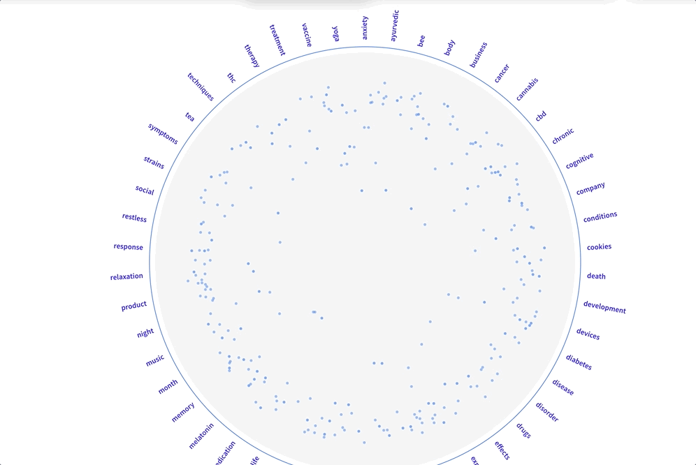 The Microtrends tool on nwo.ai enables clients to identify thousands of associations that our system organically learns between keywords and various disparate concepts - making it easy to understand the “why” behind the overarching trend. Using the visual tool (above), users may find trends at the intersection of various themes driving the narrative. Using the table view (below), users may rank the spectrum of these associations by growth rate and filter in the ones currently at an inflection point (therefore, exploding recently).