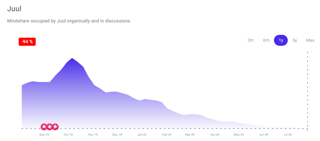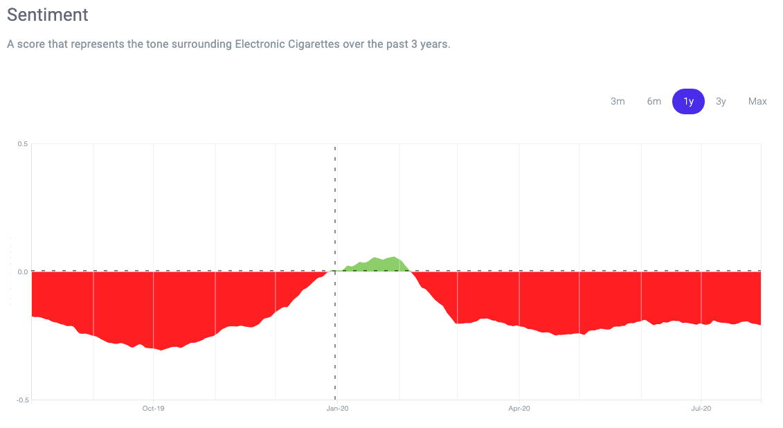 Perhaps, vapers are now switching to cigarettes as sentiment underlying vaping-related lung illness has reached an all-time low as shown below (red denotes negative tone whereas green denotes positive tone).