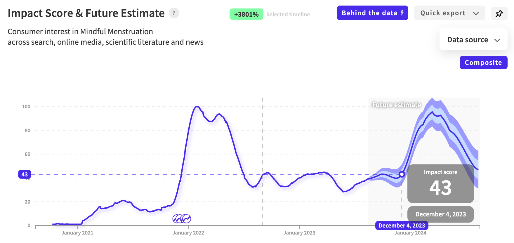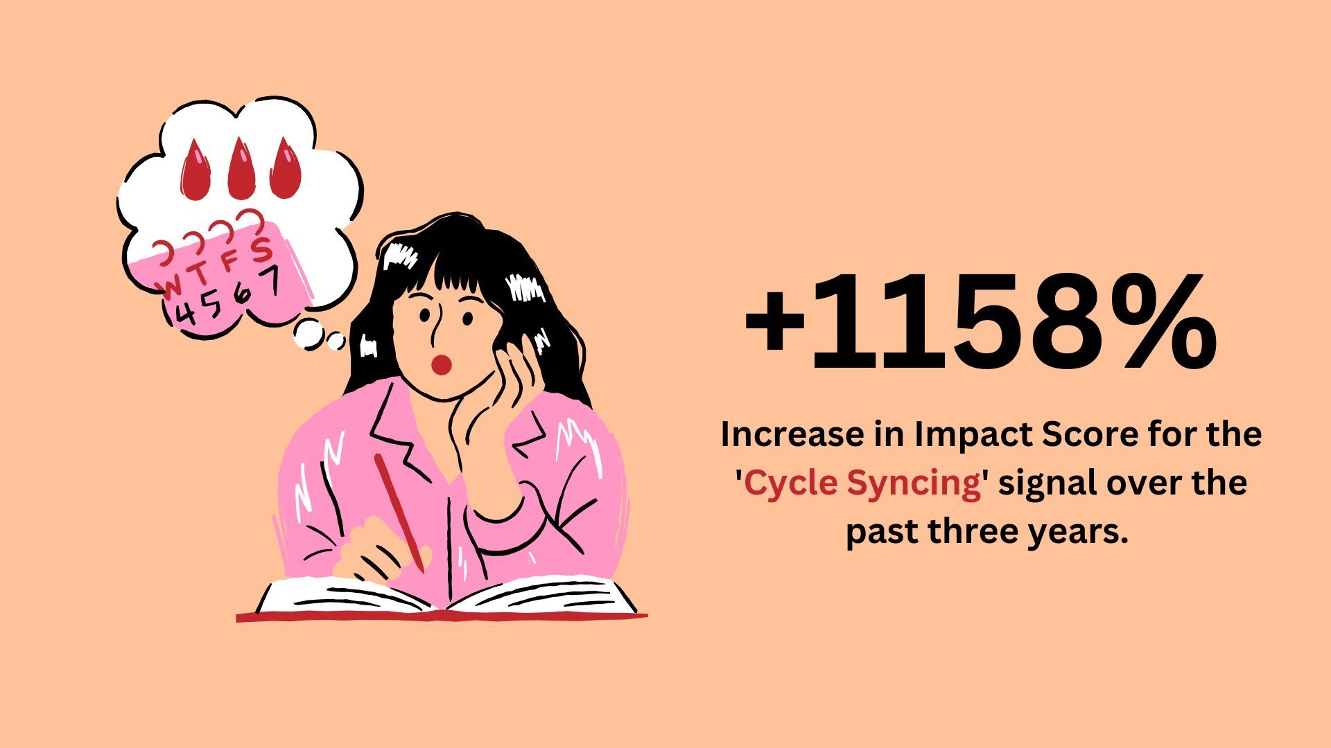 Cycle Syncing is part of the macro trend of ‘Mindful Menstruation,’ which has seen a +3801% increase in growth rate over the past three years