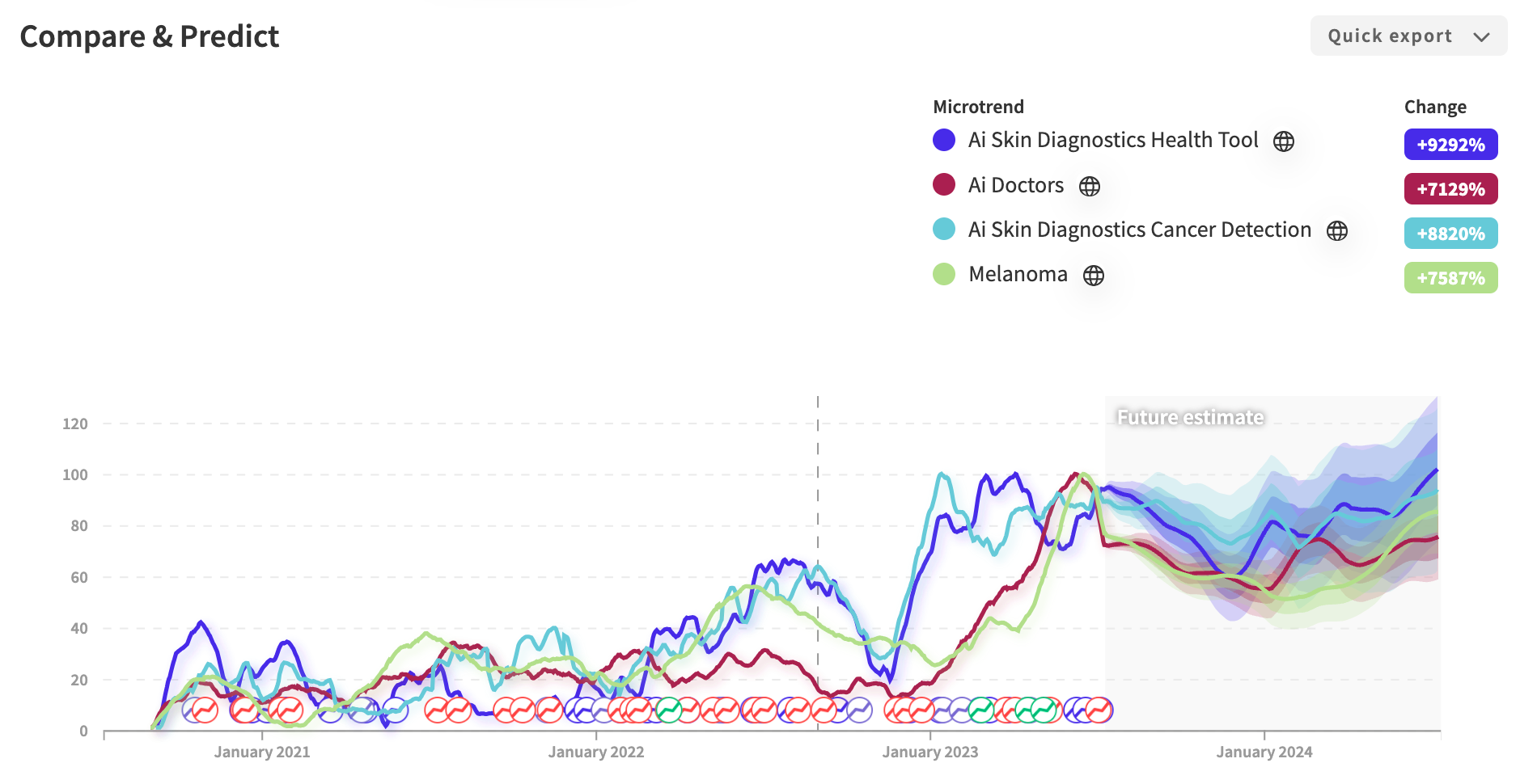 The NWO.ai signal for ‘AI Skin Diagnostics Health Tools’ forecast growth for the coming year