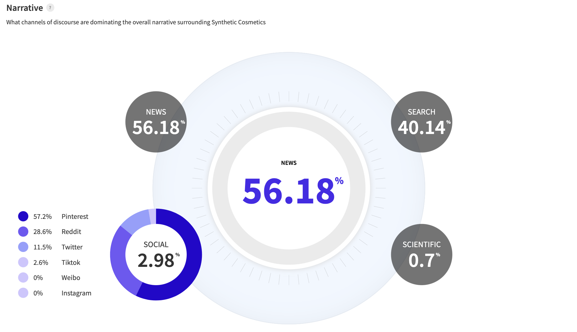 We can see that the majority of consumer conversation is driven by news, which is currently dominated by harmful synthetic coverage.