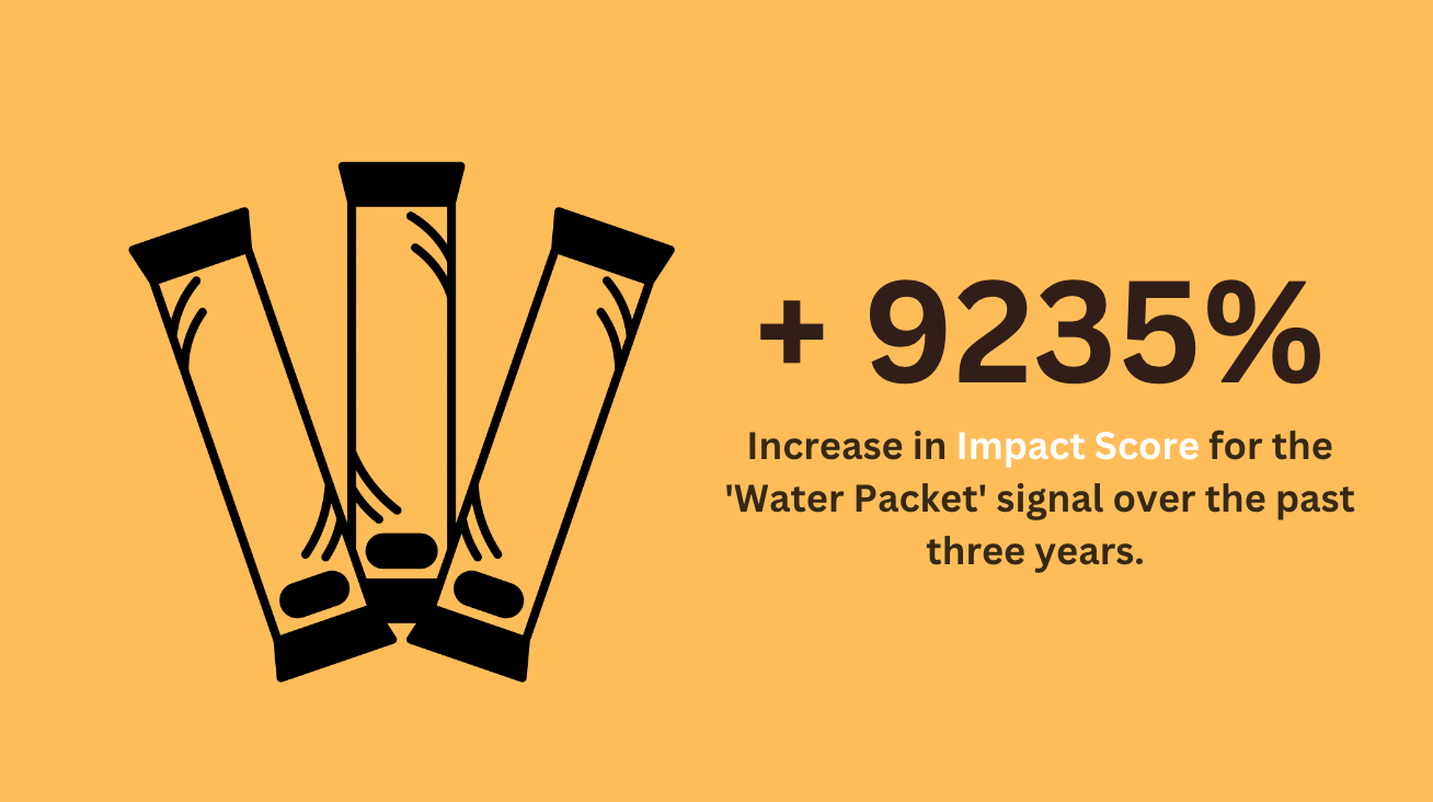 - On-the-go water packets are on the rise. Brands offering multifunctional and natural ingredient packets stand to gain.