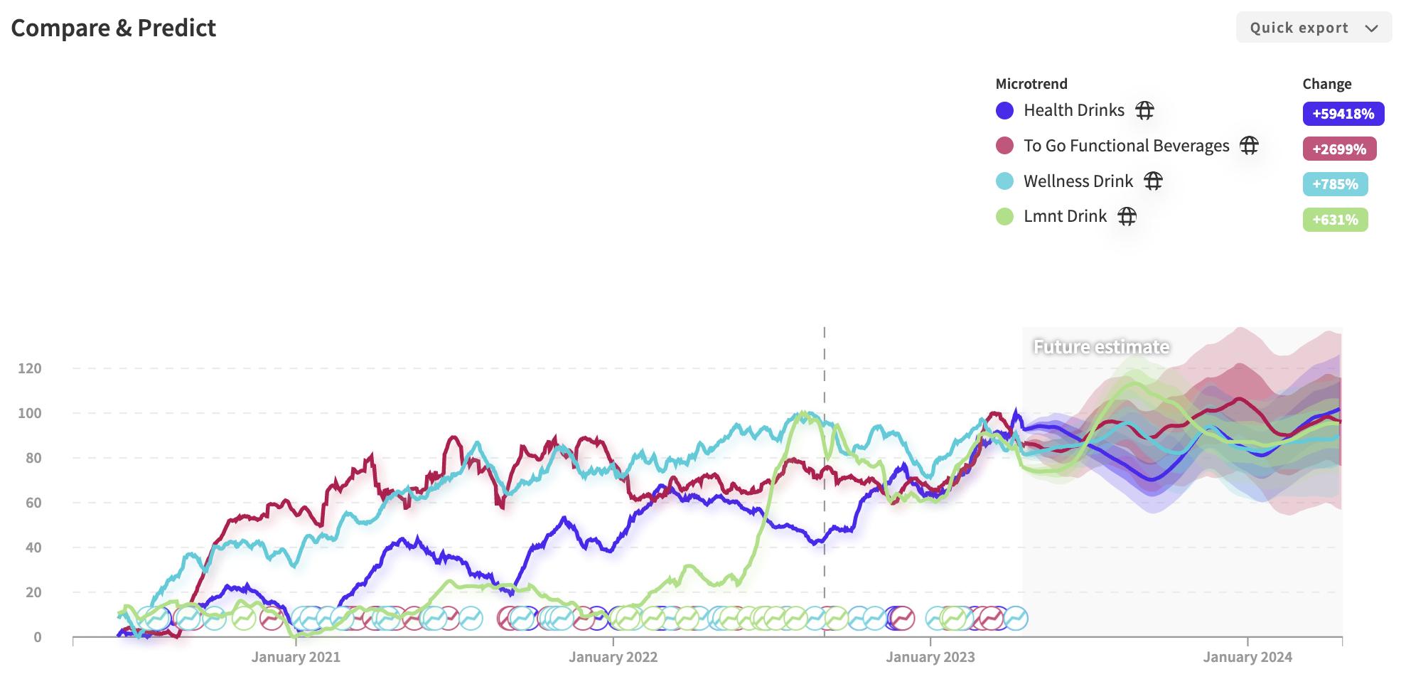 Much of the popularity of the ‘WaterTok’ trend is rooted in its health controversy. Our data points to a growing awareness and vocalization of harmful ingredients. Consumers continue to desire convenience, variety, and functionality but actively seek healthy alternatives.
