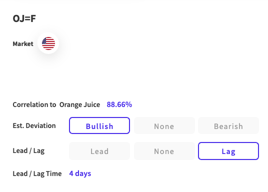 As a result of the shortage, the price of orange juice futures has shot up in recent weeks. Our signal for Orange Juice led Orange Juice futures by four days and is correlated 88.66%. Indicating that a lot of the future price movement is being driven by consumer conversation. In the meantime, you might want to pass on that pricey mimosa at brunch - the avocado toast already costs enough these days.